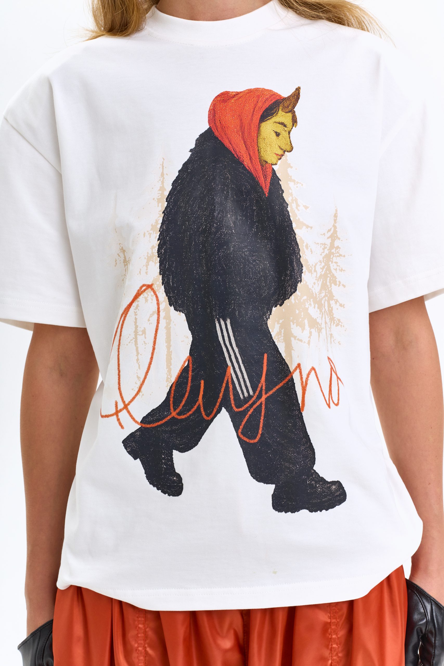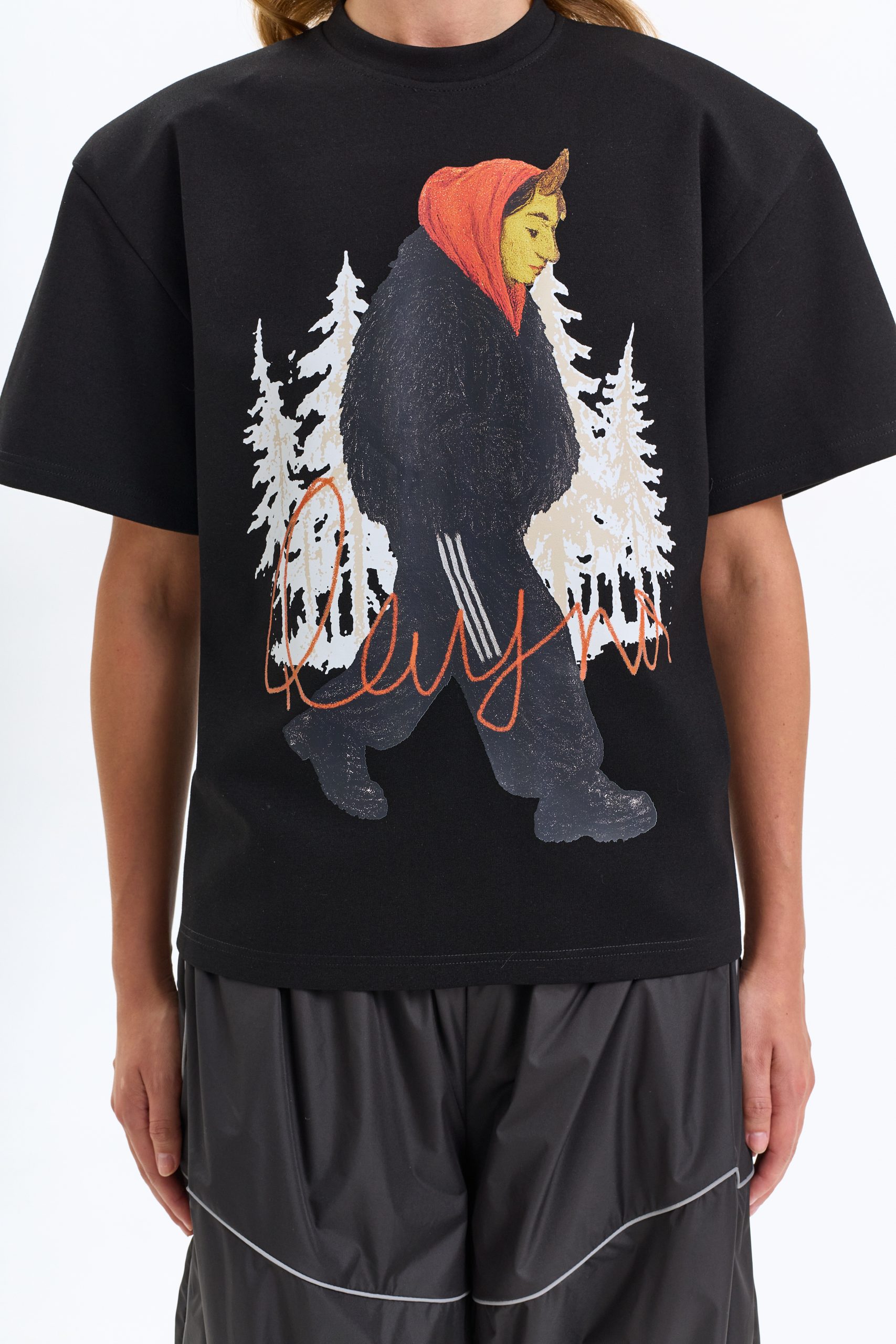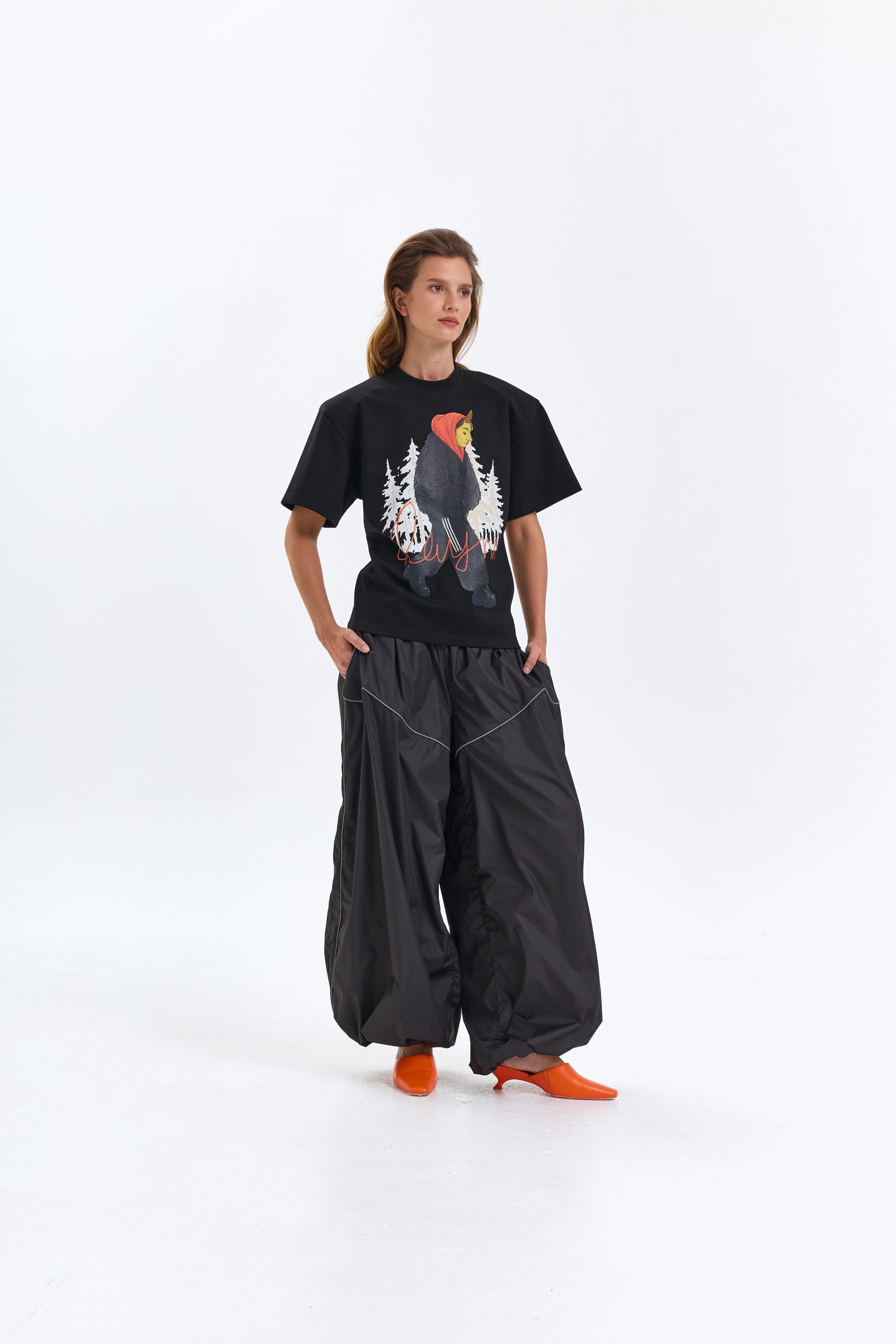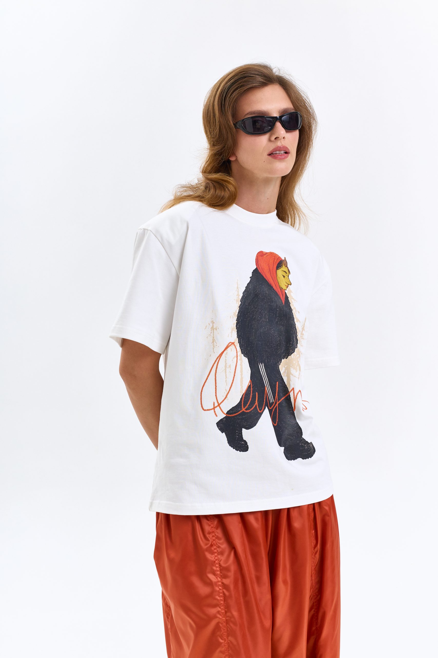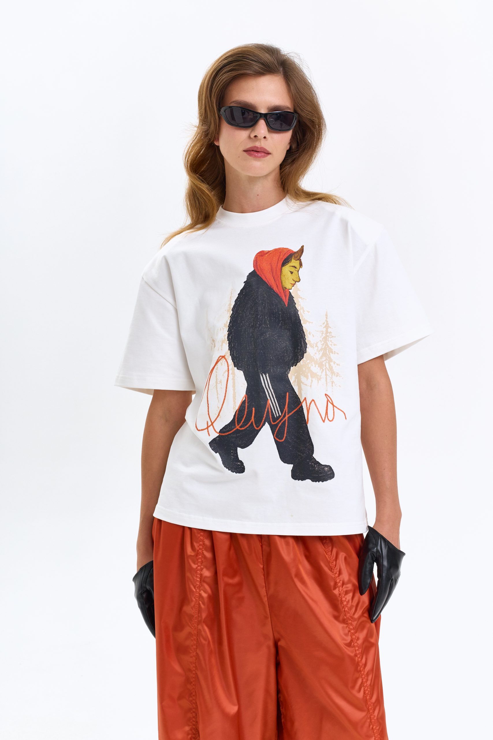 Футболка «Шурале апа» — это не просто оверсайз с ярким принтом, а игра с татарским фольклором и функциональностью. Шурале — лесной дух, хитрый, немного коварный, но всегда живой и свободный. Мы перенесли этот образ в современность: мощные линии плеч, ткань, которая держит форму, и детали, которые можно менять под настроение. Главная особенность — отстёгивающиеся плечики. Их можно оставить для дерзкого силуэта или снять, чтобы сделать образ мягче. На спине есть застёжка-крючок: футболку легко приталить или носить свободно, играя с объёмом. Это вещь-трансформер: хочешь — подчёркиваешь силуэт, хочешь — оставляешь простор и свободу. Футболка легко адаптируется к любому стилю — от базового городского до экстравагантного. Она будто хранит в себе дух леса: непредсказуемый, живой, полный силы. Состав: 75% вискоза, 20% полиэстер, 5% лайкра
